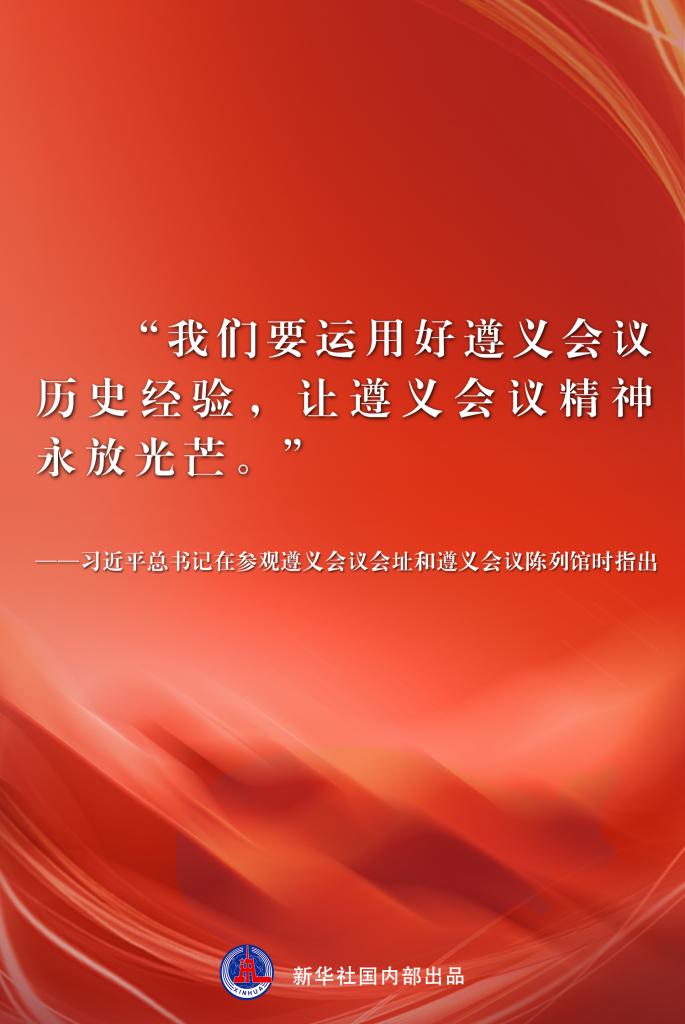 “我们要运用好遵义会议历史经验,让遵义会议精神永放光芒。”“从长征精神和遵义会议精神中深刻感悟人的初心和使命,落实新时代党的建设总要求,实事求是、坚持真理,科学应变、主动求变,咬定目标、勇往直前,走好新时代的长征路。”习强调。